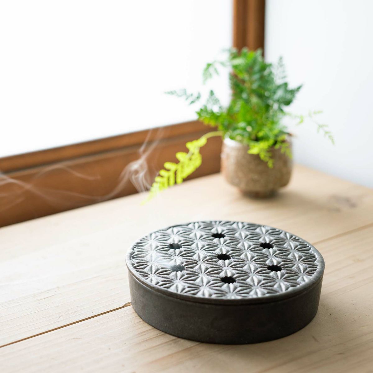 夏の暮らしに、ほっと癒しを与えてくれる蚊遣器(蚊取り線香ホルダー)。くるくると立ちのぼる煙とともに、ふわりと広がる香りに包まれれば、どこか懐かしい気持ちがよみがえります。そんな季節の風物詩を、信楽焼の老舗窯元・明山窯(めいざんがま)が、現代の暮らしにもなじむデザインで仕上げました。風情と実用を兼ね備えた、2種類の蚊遣器をご紹介します。 ーーーーーーーーーー 🌿職人技が光る、スタイリッシュな「麻の葉」 「麻の葉」は、その名の通り麻の葉模様をあしらったフタ付きの蚊遣器。落ち着いた黒の陶肌に幾何学模様が映え、和洋どちらの空間にもマッチします。 麻の葉模様は、日本の伝統的な文様のひとつで、古くから親しまれてきました。麻の葉がまっすぐにすくすくと育つ様子から、「健やかな成長」や「魔除け」の意味を持ち、赤ちゃんの産着や寺院の装飾などにも使われてきた縁起の良い柄です。 そんな歴史ある文様が、現代の暮らしにすっと馴染むデザインで表現されているのが、この「麻の葉」です。 蚊取り線香の香りがふんわり立ちのぼる時間が、まるで一服のお茶を楽しむような、心静かなひとときに変わります。重厚感あるデザインは、玄関先やテラスにもしっくりと馴染み、夏のインテリアとしても優秀です。 ーーーーーーーーーー 🌊信楽焼ならではの、やさしいブルー「biwako」 「biwako」は、その名の通り、琵琶湖のさざ波を思わせる水色の釉薬が特徴的な、信楽焼の蚊遣器です。 信楽焼の土の素朴な風合いと、涼しげなブルーのグラデーションが美しく調和し、見た目にも涼を感じさせてくれます。焼き物ならではの質感が、夏のインテリアに自然に溶け込み、日常をほんの少し特別に彩ってくれるはず。...
