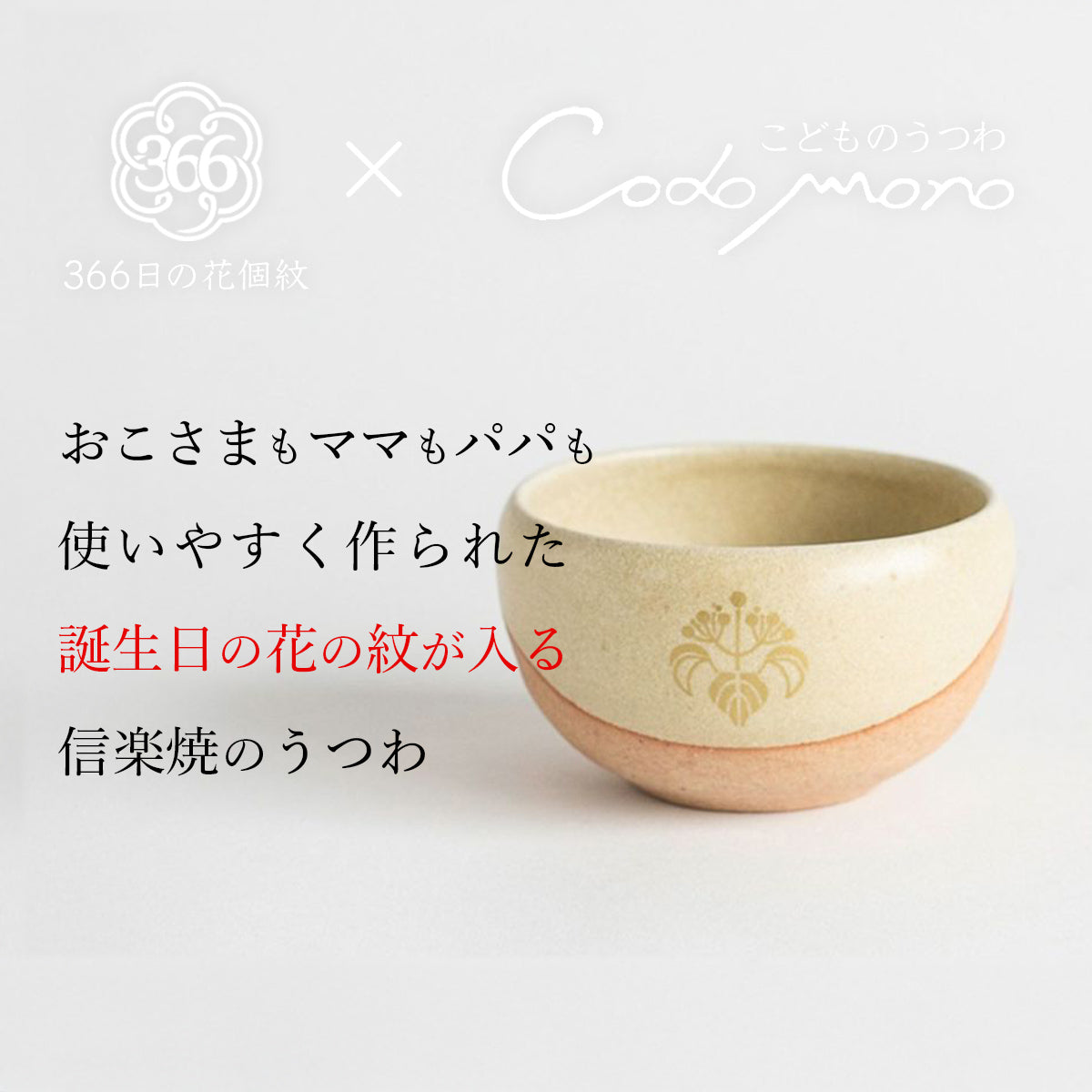 生まれた日の花個紋が咲く信楽焼のこどもうつわは、健やかな成長と幸せへの願いを込めた特別な贈り物。おこさまやママ、パパが使いやすいように作られており、出産祝いにぴったりの一生ものの器です。