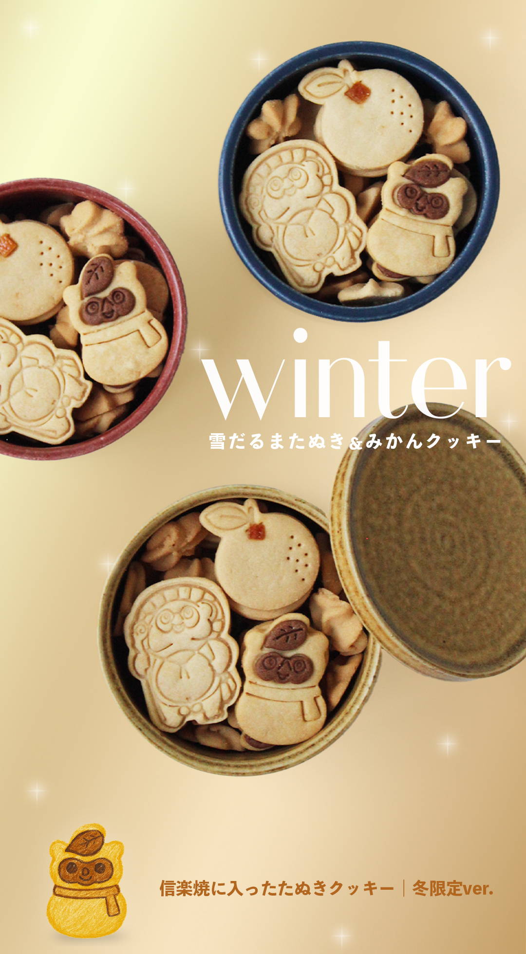 クッキーが入っているのは信楽焼の器。