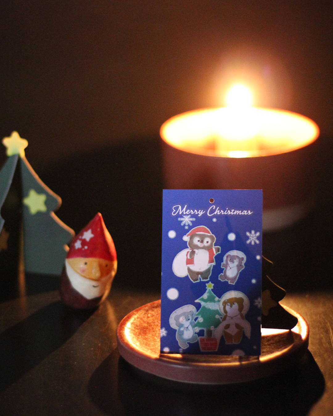 たぬき家族の楽しいクリスマスの様子が描かれた